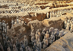 - Emperor Qin's Terracotta Tomb: ~100 years after Emperor Qin died, we find the earliest reference to his amazing tomb in the writings of Sima Qian who wrote the Historical Records or Shi Ji. Sima Qian writes about his burial, his coffin being encased in a bronze sarcophagus floating on a river of mercury, vaulted ceilings covered with constellations of the night sky. He claimed that Emperor Qin was buried with palaces, towers, officials, valuable artefacts and wonderful objects and other details. These were also quite amazing claims.